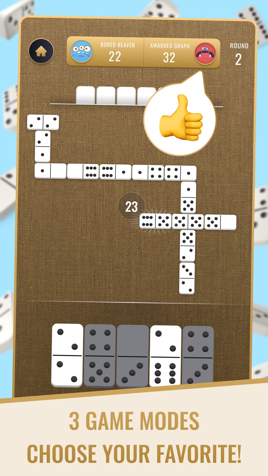 2. Block Domino: similar to Classic Dominoes, but you have to pass your turn if you are stuck.